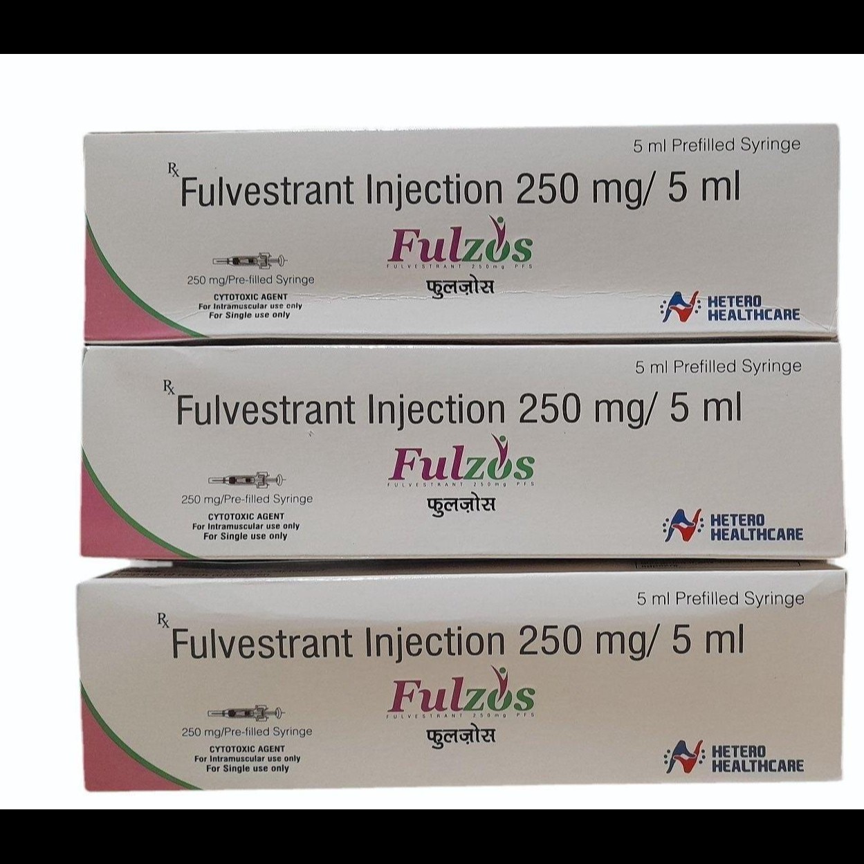 FULZOS250 contains Fulvestrant 250 mg, an estrogen receptor antagonist used in hormone-dependent breast cancer treatment. It works by blocking and degrading estrogen receptors, thereby slowing or stopping cancer cell growth.