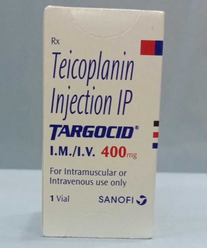 TARGOCID 400 MG Injection contains Teicoplanin, a powerful glycopeptide antibiotic used to treat serious bacterial infections caused by Gram-positive organisms. It is widely prescribed for hospital and clinical use due to its effectiveness against resistant bacteria.
